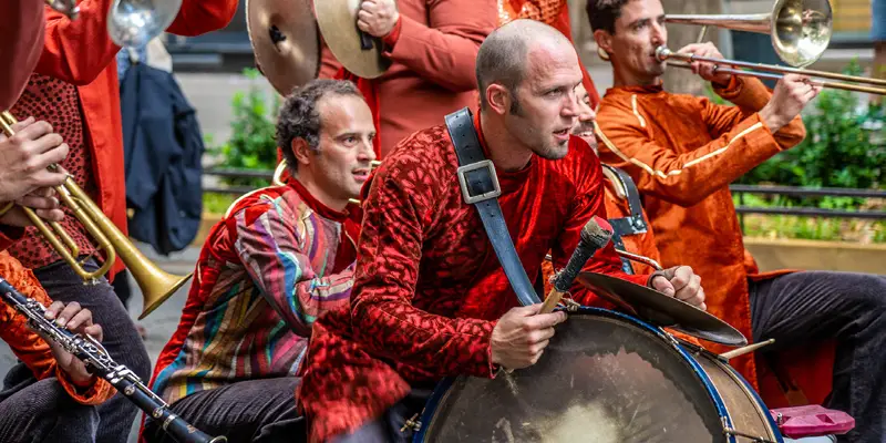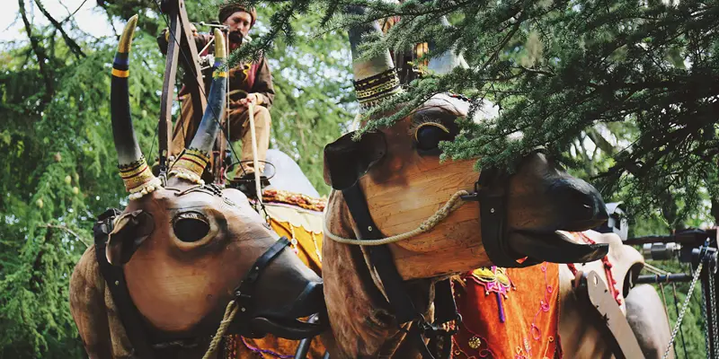 Un Oisôh voyageur, des Vaches Sacrées traversant les continents, accompagnés par une fanfare nourrie de musiques d'Amérique du Sud, La Belle Image, et la fantaisie du duo Brother Kawa.