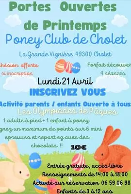 Le poney club de Cholet à la grande Vignière organise ce lundi 21 avril, lundi de Pâques, une porte ouverte...