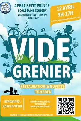 L'APE de l'école saint Exupéry organise un vide grenier le dimanche 12 Avril 2026 de 9h à 17h.