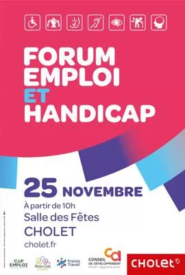 La Ville de Cholet, en collaboration avec le Conseil de Développement et en partenariat avec Cap Emploi, France Travail et la Mission locale, propose la 2e édition du "Forum Emploi et Handicap" mardi 25 novembre, de 10h à 17h, à la Salle des Fêtes.