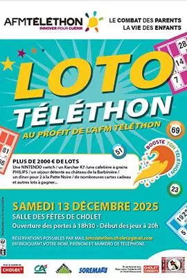Réservations possibles par mail loto.telethon.cholet@gmail.com en indiquant votre nom, prénom et numéro de téléphone