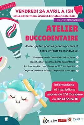 Venez parler de soins bucco-dentaire le vendredi 24 avril à 15h à la salle de l'Ormeau à Saint-Christophe-du-Bois. » Présentation de...