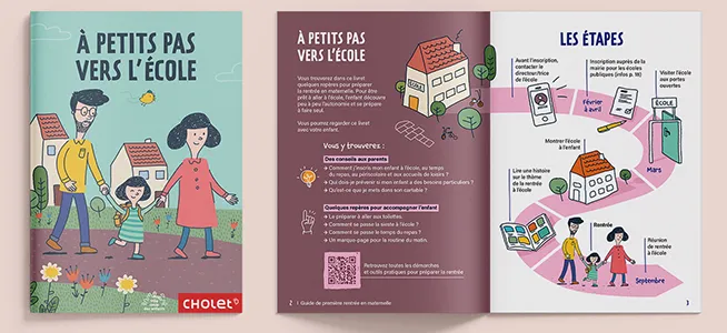 Le livret À petits pas vers l’école est conçu pour aider les parents à préparer sereinement la rentrée. Comment j'inscris mon enfant, qui je dois contacter... Comment je prépare mon enfant à aller à l'école ? Est-ce qu'il emmène un doudou, comment se passe la sieste ou le repas, comment se passe la rentrée ?