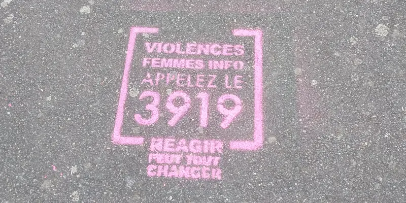 Retrouvez dans les rues, à des endroits passagers le message suivant : "Violences Femmes info. Appelez le 39 19, Réagir peut tout changer".