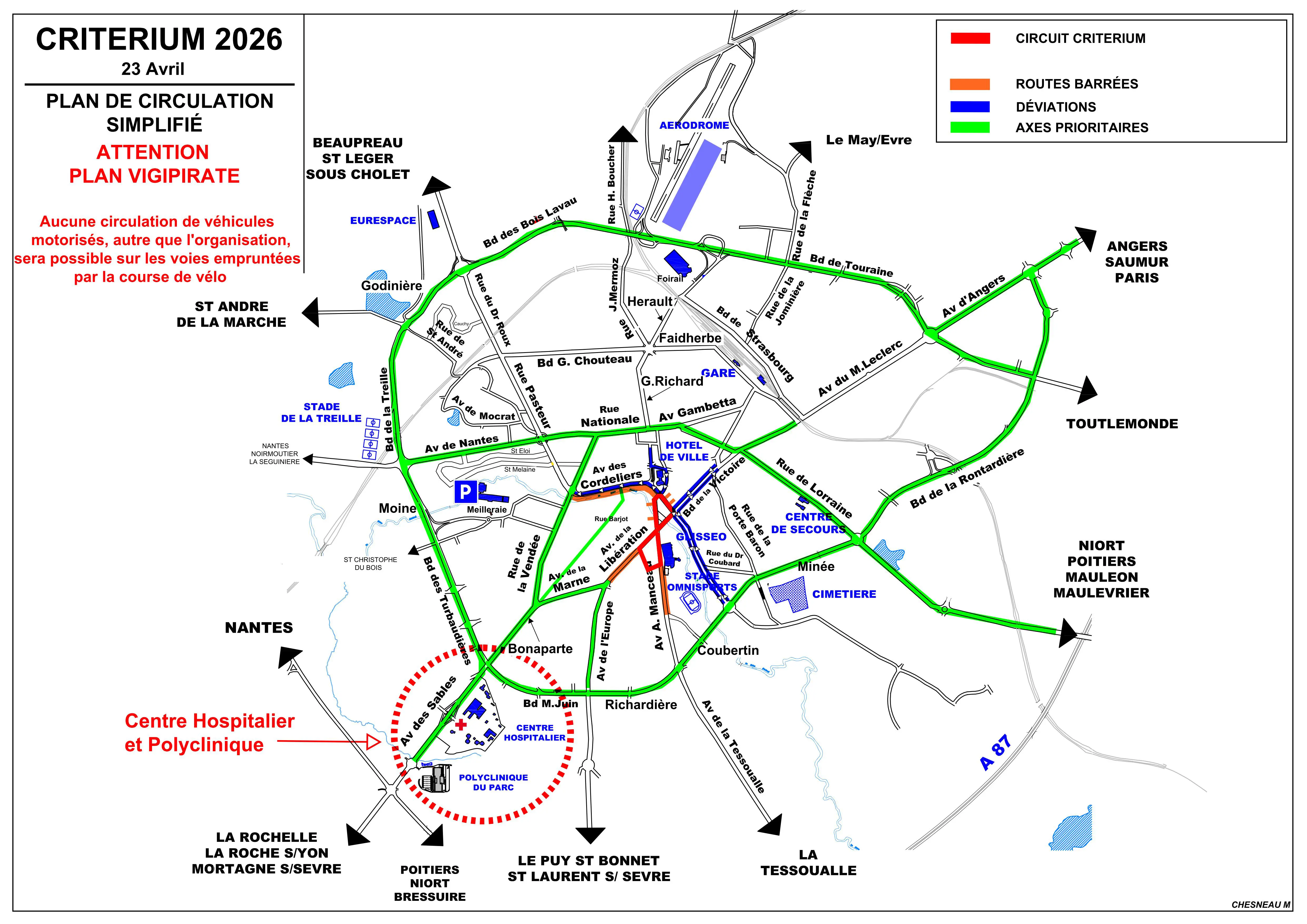Départ place du rond-point de la Légion-d’Honneur (rond-point de La Tessoualle) à 14h30