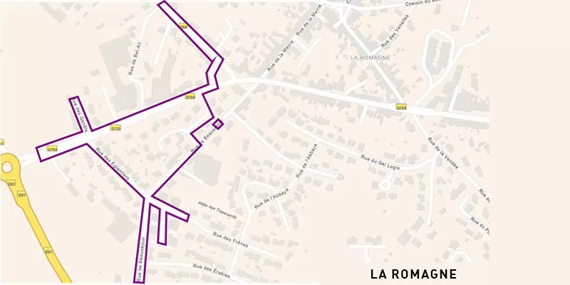 Cholet Agglomération va réaliser sur La Romagne, à partir de février 2026 jusqu'à juillet 2026, des travaux de mise en séparatif du réseau d'assainissement des rues Bel Air, Nationale, Alouettes, Mésanges, Eglantiers, Chênes, Genêts, Beauséjour et Frênes.