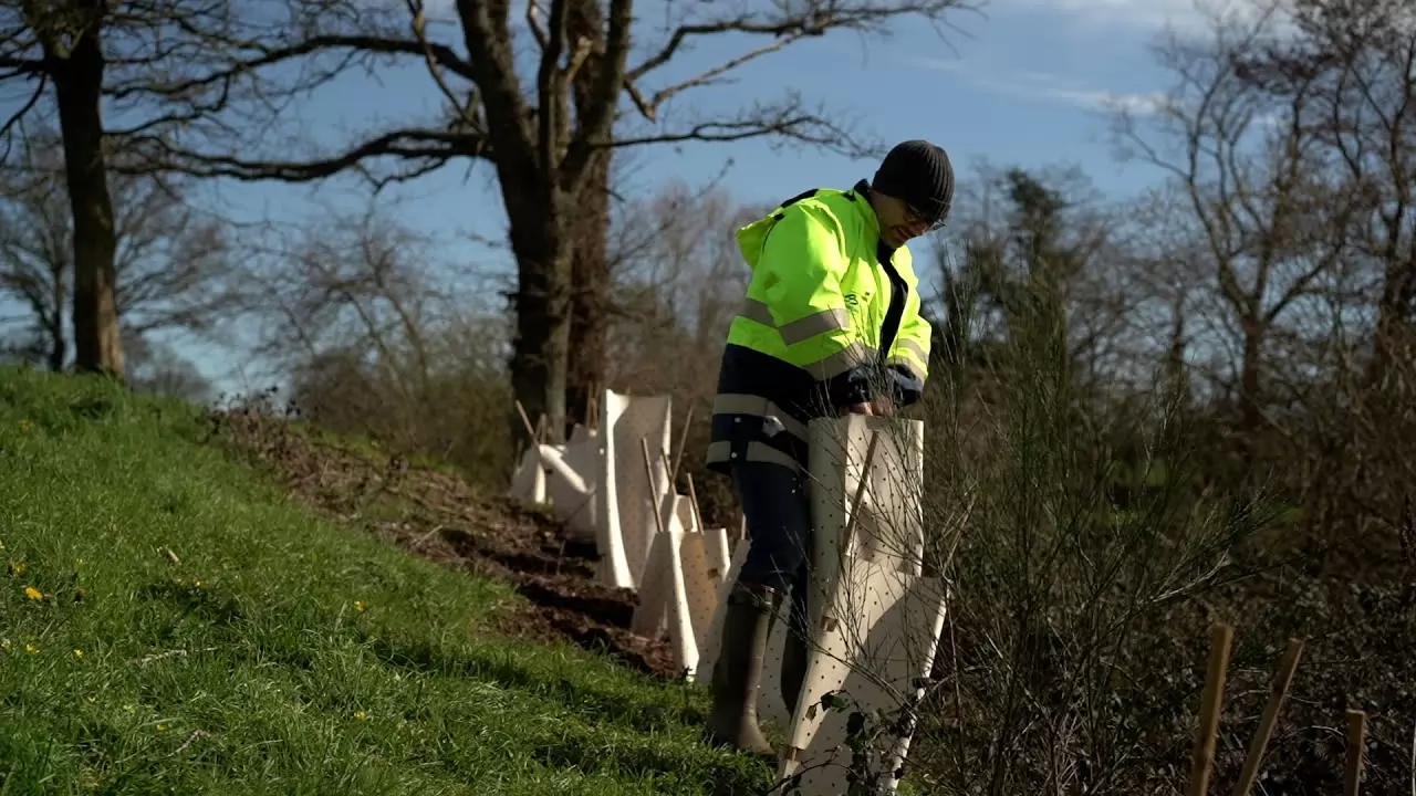 Dernièrement, on a planté à peu près quatre kilomètres de haies sur talus qui vont permettre en fait d'arrêter l'eau, qu'elle s'infiltre et qu'elle soit filtrée avant d'arriver dans le lac.