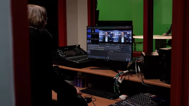Notre journée type, elle démarre un peu toujours de la même façon. En général, on a une petite conférence de rédaction le matin, alors c'est plutôt rapide. On se répartit les rôles dans les différents sujets qu'on va pouvoir faire. On revient ici après avec les images et on fait notre montage sur notre logiciel de montage qui est Final cut pour ne pas le citer. Et puis voilà, apprès il y a l'enregistrement du journal.